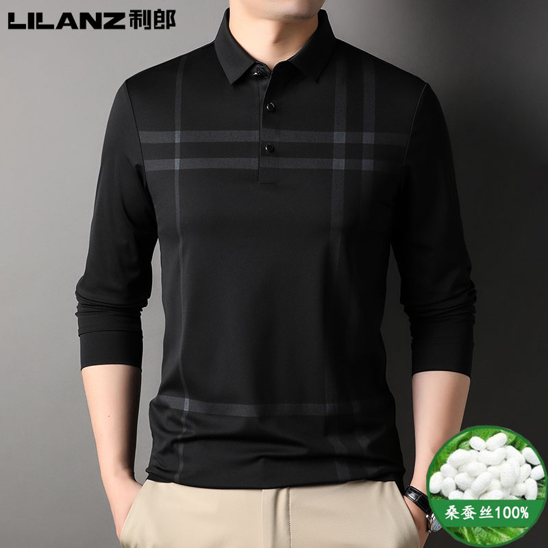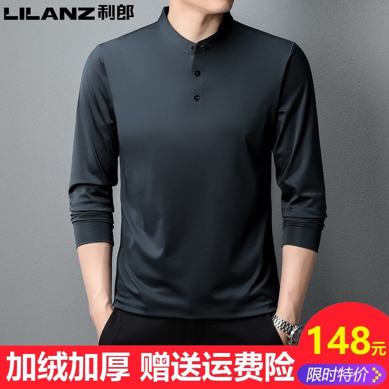 利郎官方长袖t恤男秋冬季加绒加厚高端丝光棉打底百搭抗皱POLO衫