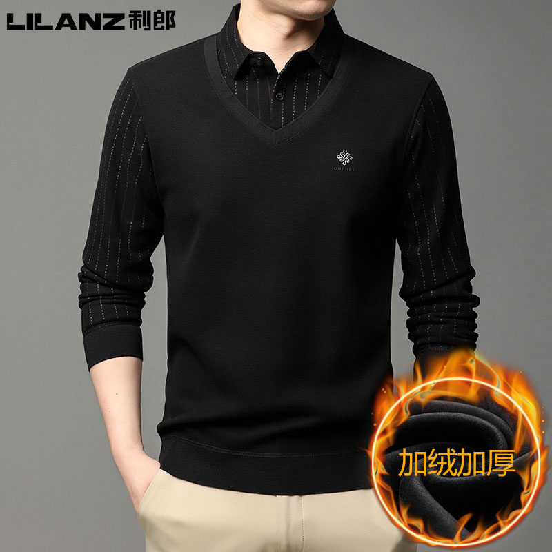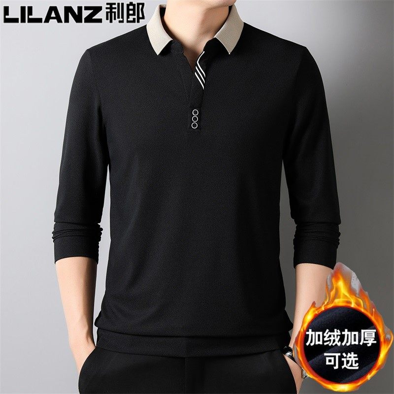 利郎秋冬季男士长袖加绒Polo衫纯色翻领打底衫中年商务休闲T恤潮t