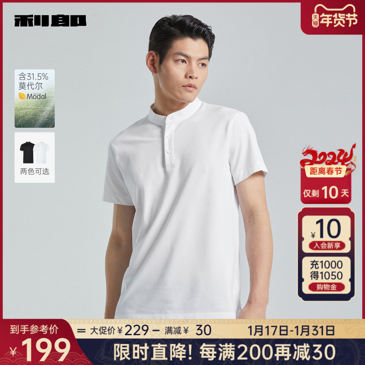 【莫代尔】利郎官方 短袖polo衫男士休闲纯色立领2024夏季新款T恤
