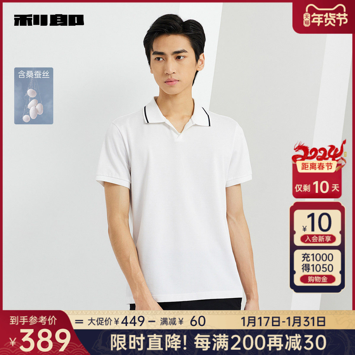 【桑蚕丝】利郎官方 翻领T恤男2024夏商务休闲白色男士POLO衫