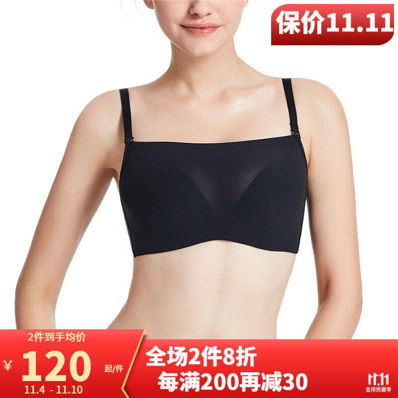 【舒适无钢圈】加一尚品防走光薄款舒适聚拢文胸光面抹胸0200黑色