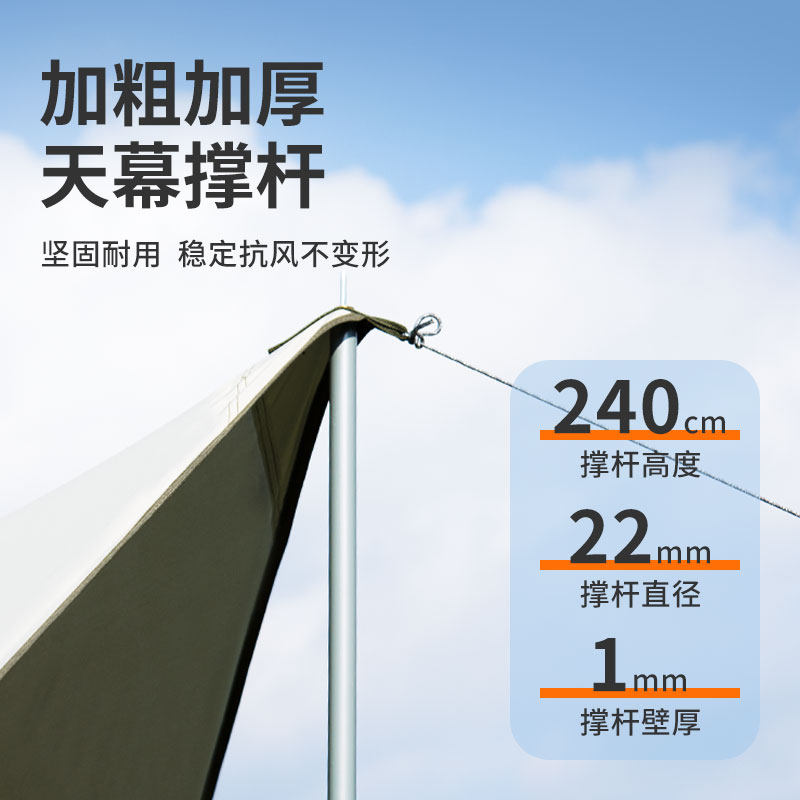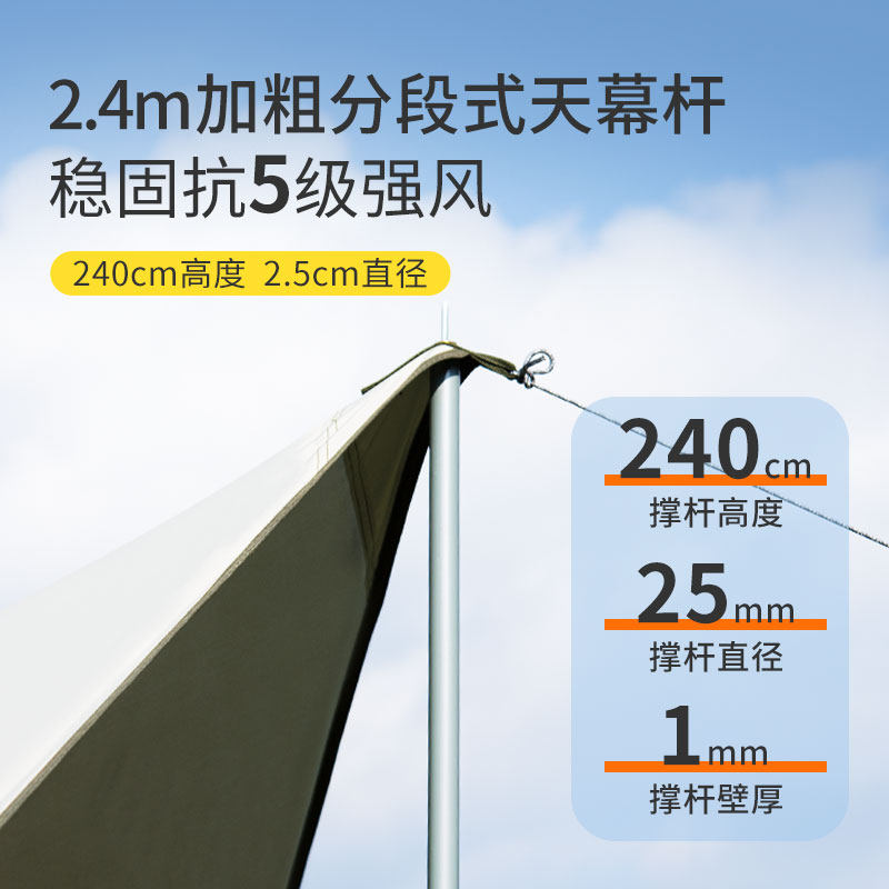 匡途户外天幕杆帐篷门厅支撑杆铁杆超长营柱五节支架加粗两根2.5M