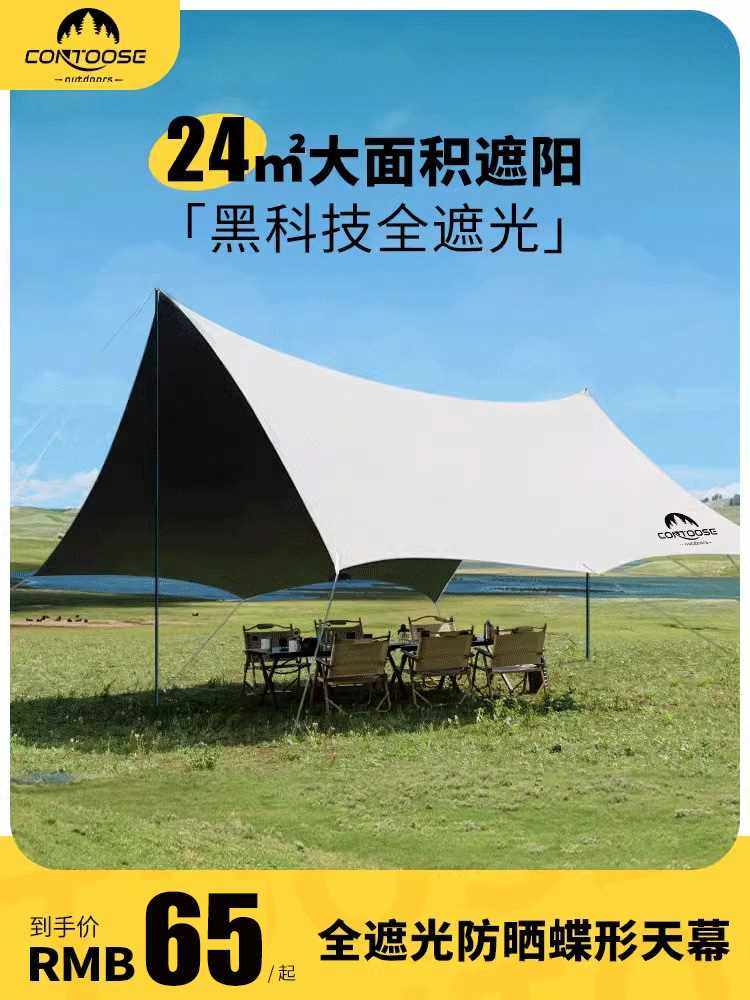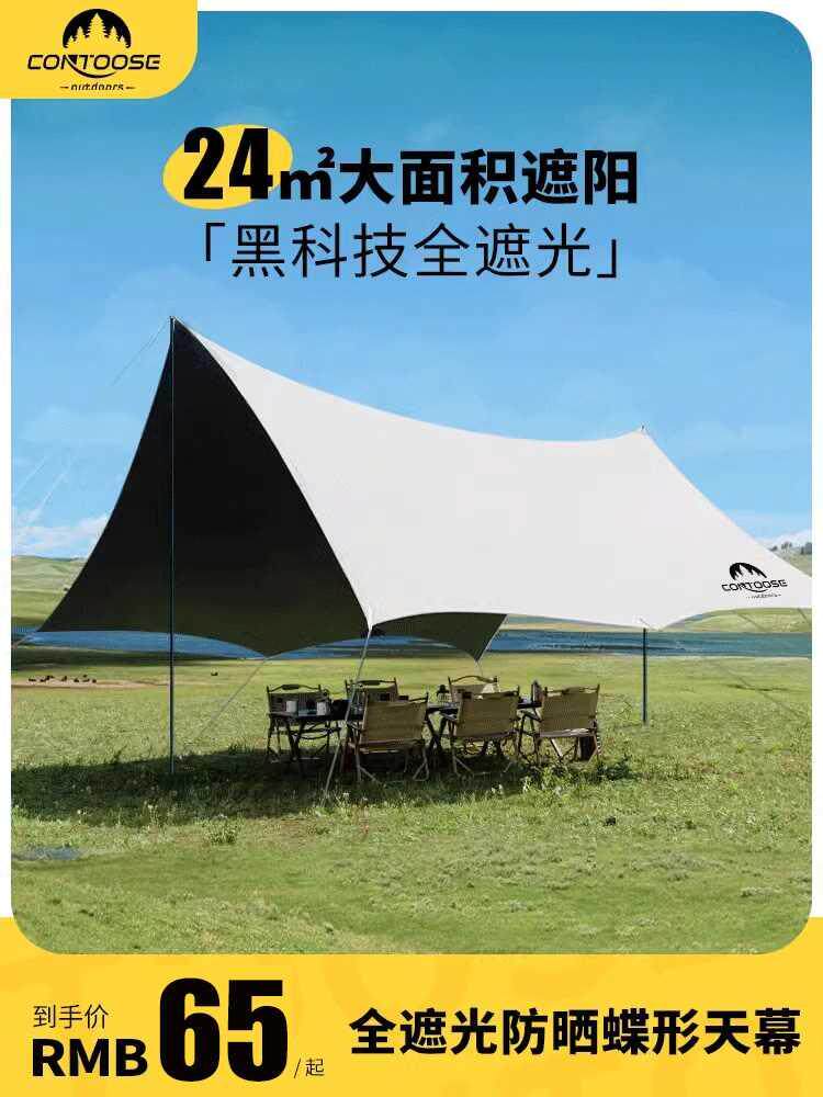 匡途黑胶天幕帐篷户外露营网红野营遮阳凉棚野餐桌椅防晒八角蝶形