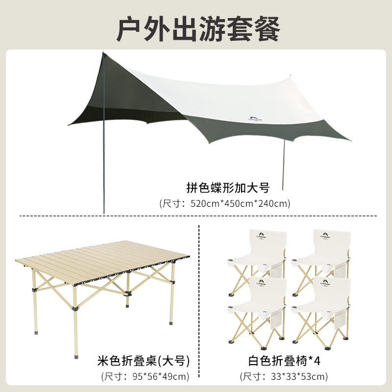 匡途黑胶天幕帐篷户外露营遮阳棚蝶形八角防晒野营桌椅全套装备
