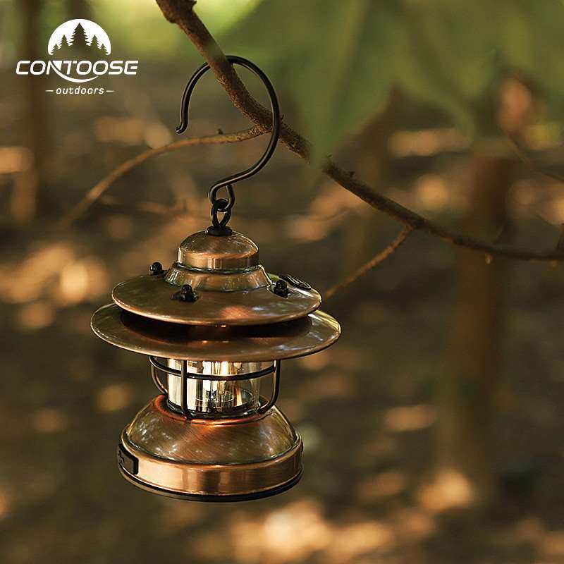 匡途户外露营灯老式复古野营帐篷灯精致LED坐式吊灯氛围照明马灯