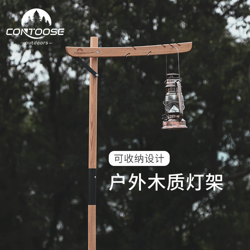 定制匡途户外露营帐篷灯架便携折叠野营照明马灯杆实榉木挂架木质