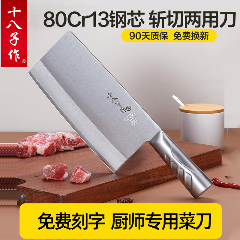 阳江十八子菜刀斩骨刀不锈钢家用厨房砍切两用官方旗舰店18子作