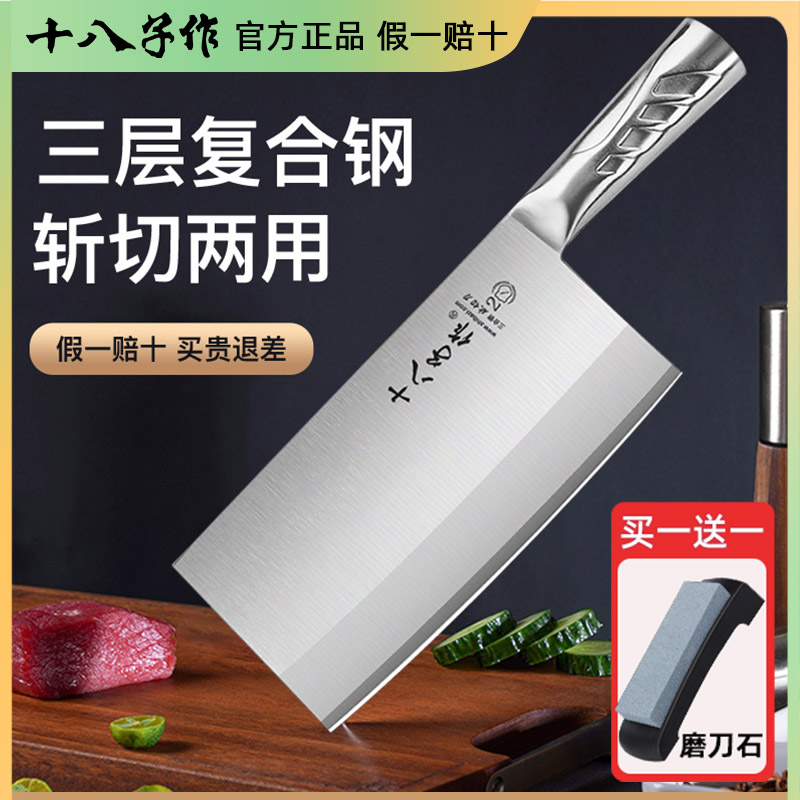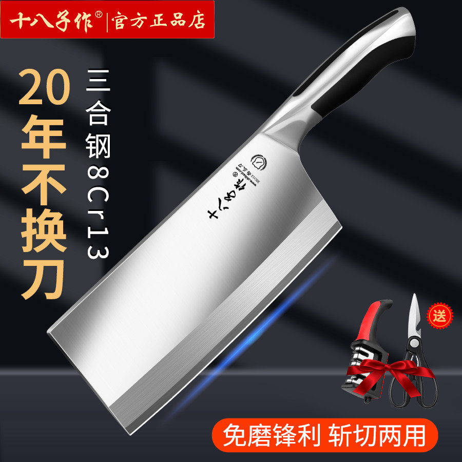 十八子作菜刀家用斩切刀厨师专用刀具三合钢切片刀官方旗舰店正品
