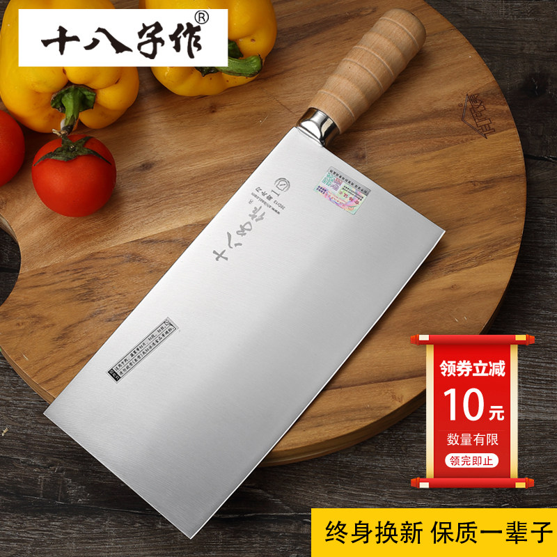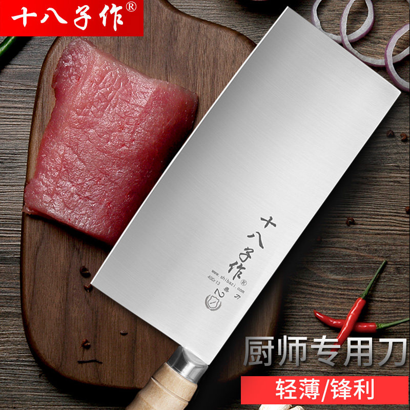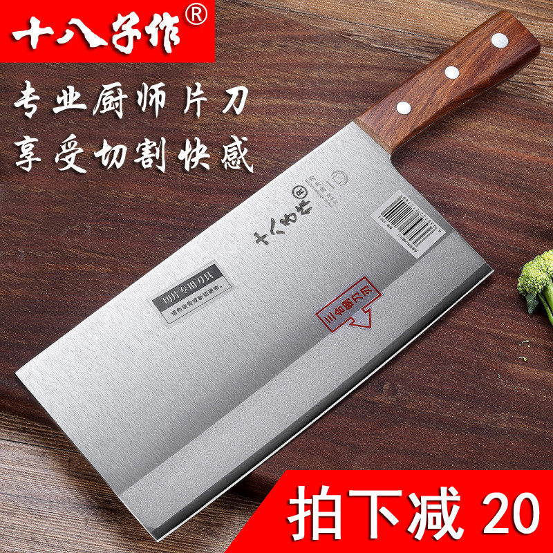 十八子作菜刀家用切片刀厨房专用切菜切肉刀不锈钢锋利厨师刀正品