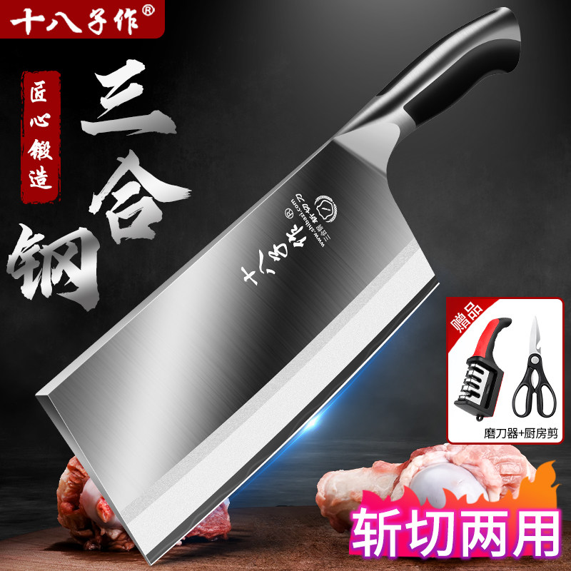 十八子作菜刀厨房家用三合钢斩切两用阳江刀具锋利超快砍骨切片刀