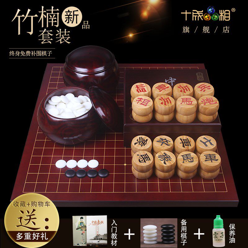 十成品相 3cm厚楠竹围棋象棋两用套装双面圆角棋盘黑白五子棋儿童