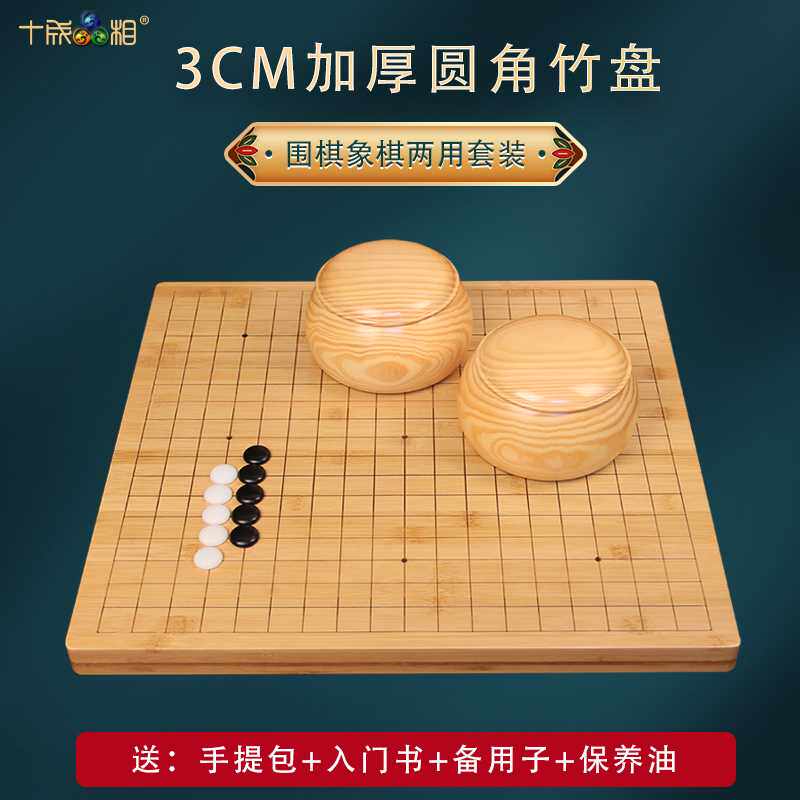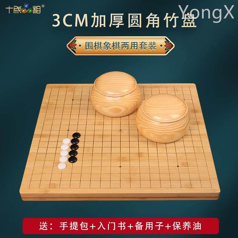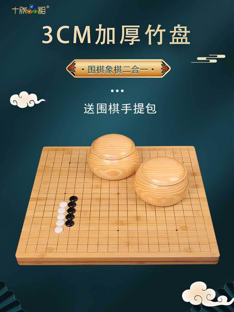 十成品相 3cm厚楠竹围棋象棋两用套装双面圆角棋盘黑白五子棋儿童
