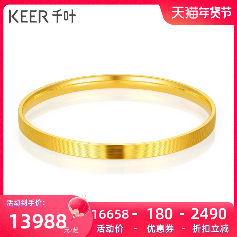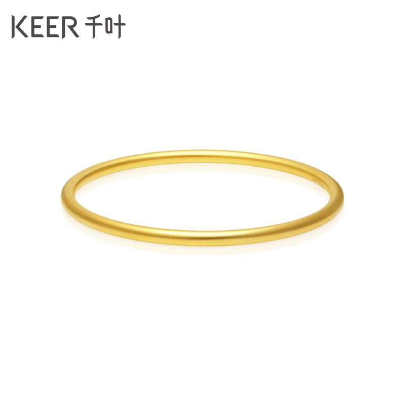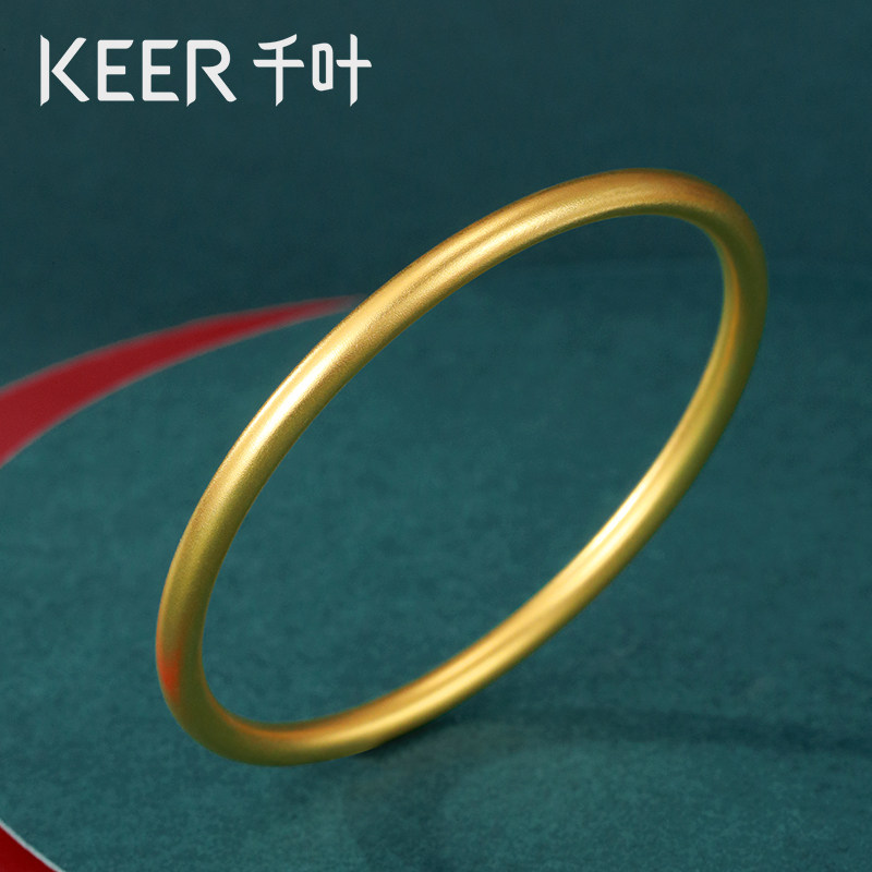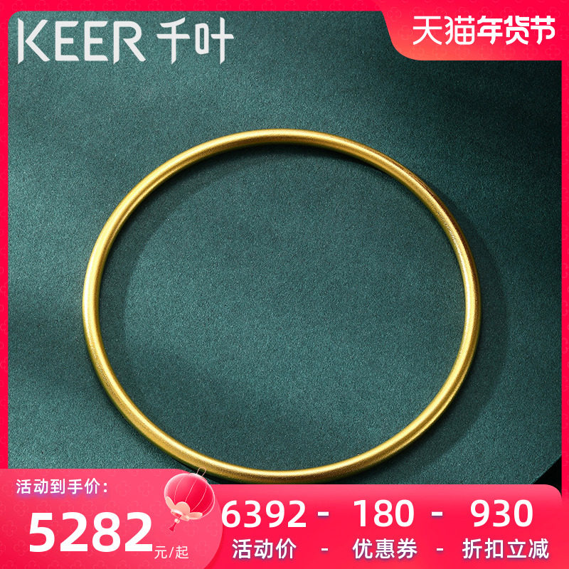 千叶珠宝古法黄金手镯女素圈足金实心磨砂结婚子送妈妈女友计价YS