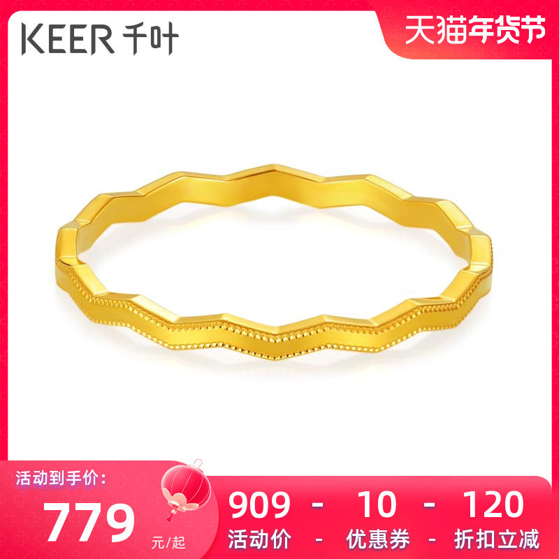 千叶珠宝黄金足金戒指龙鳞金气质素圈简约手饰新年礼物新款计价