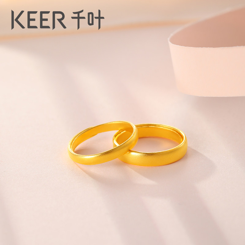 千叶珠宝 黄金足金999素圈情侣戒指 简约素圈手饰指环新款计价