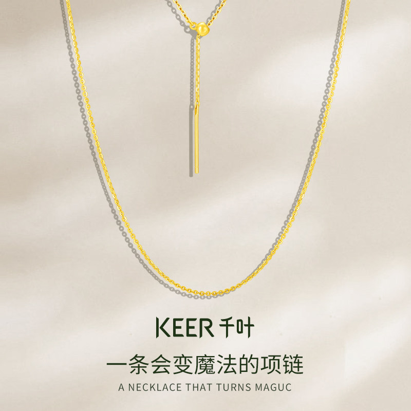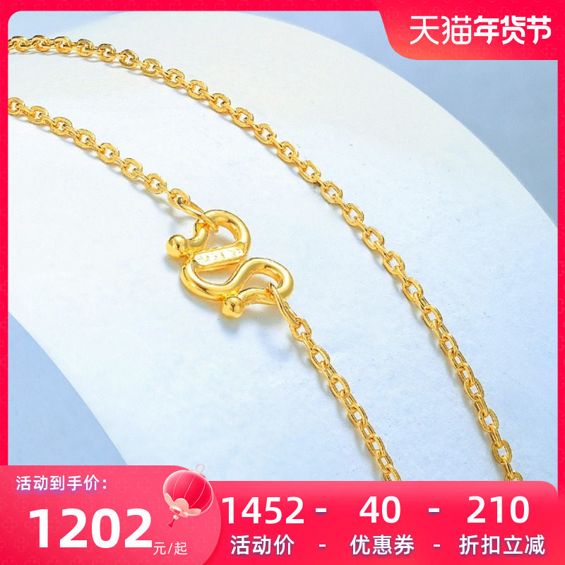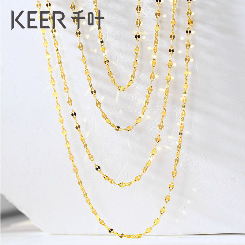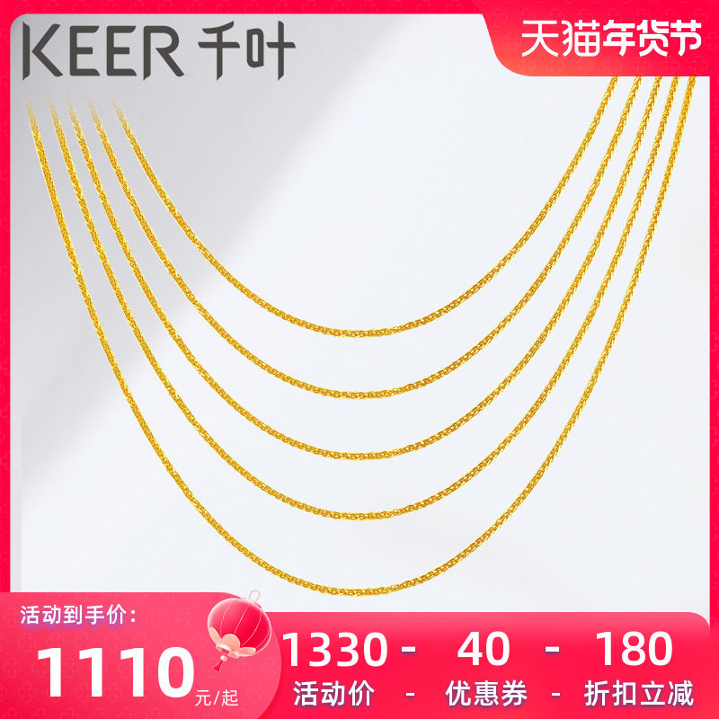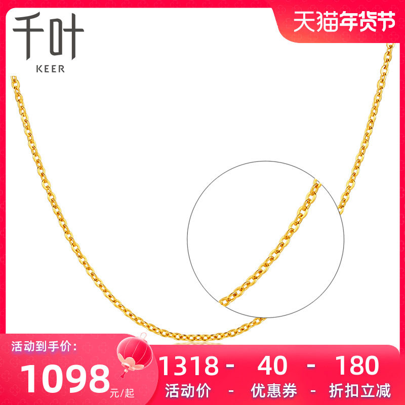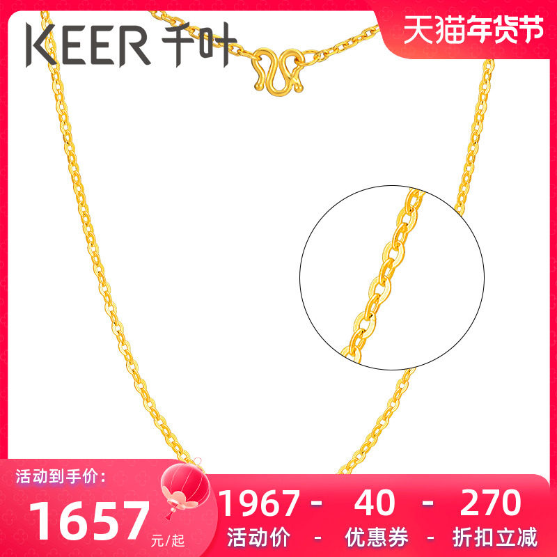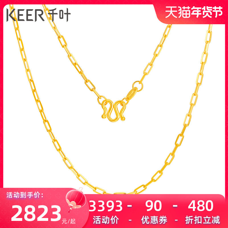 千叶珠宝黄金足金素链百搭细链锁骨链子万能链新年礼物女友计价