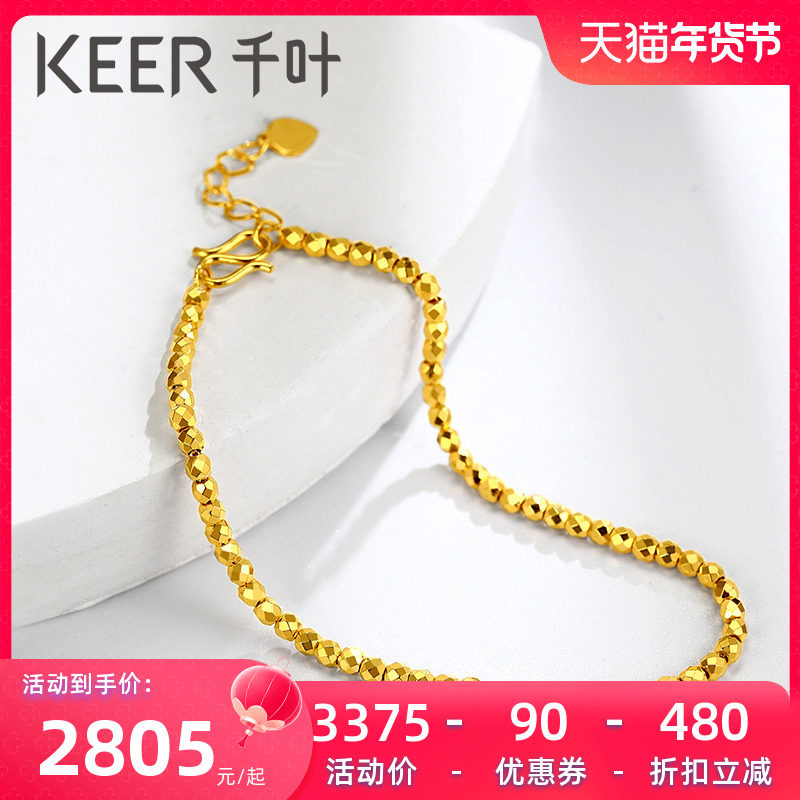 千叶珠宝黄金足金素链爆闪蹦迪珠手饰手链送妈妈女友礼物计价