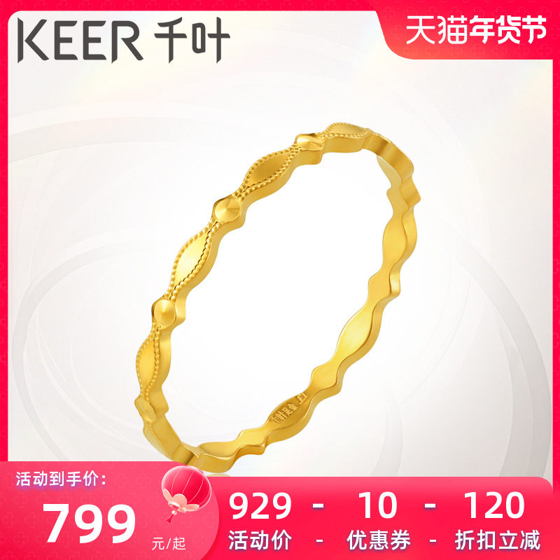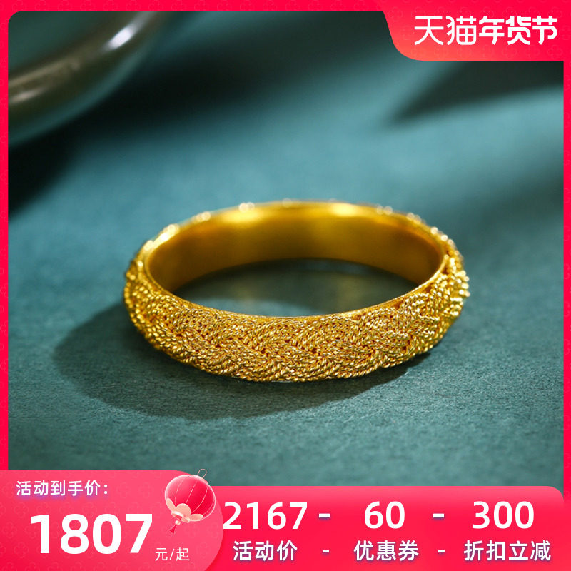 千叶珠宝古法素圈黄金戒指花丝编织足金戒指新款情人节礼物计价