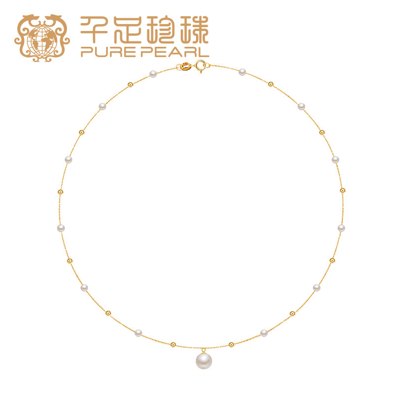 千足/轻桥/满天星18K金锁骨链 海水珍珠圆形小众款项链