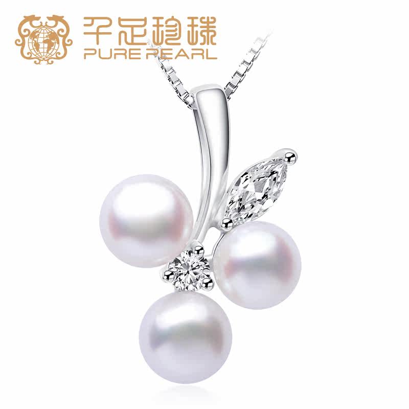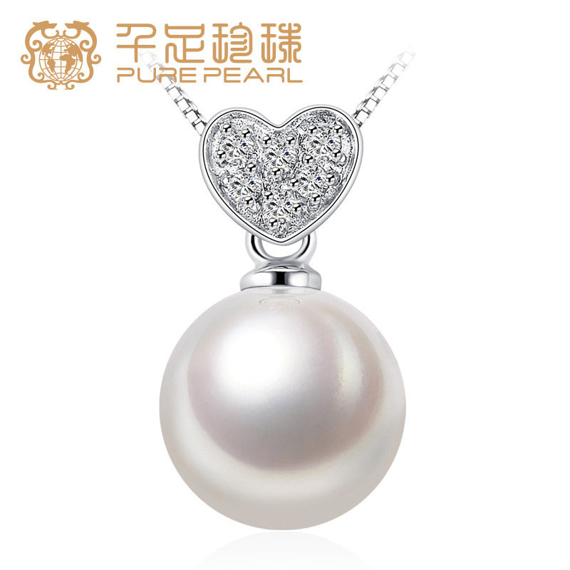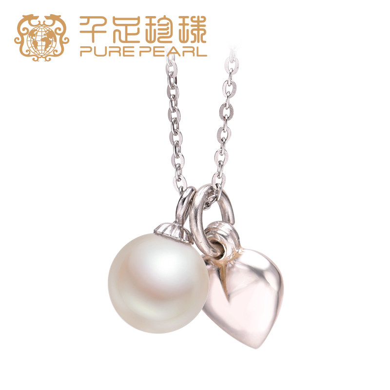 千足珠宝瑷芸近圆强亮7.5mm珍珠吊坠银项链love系列上市