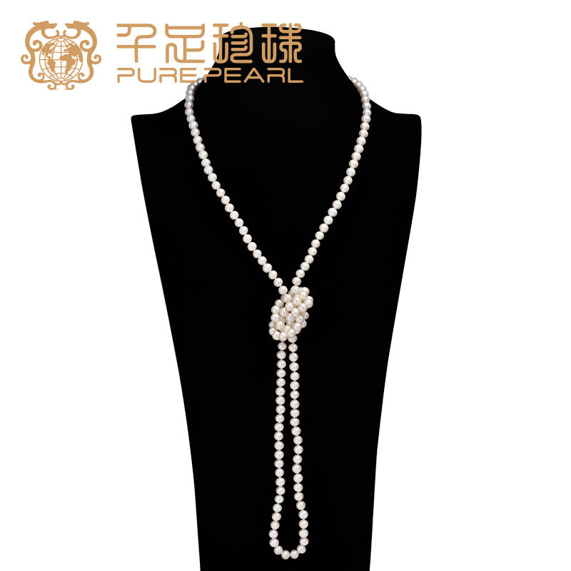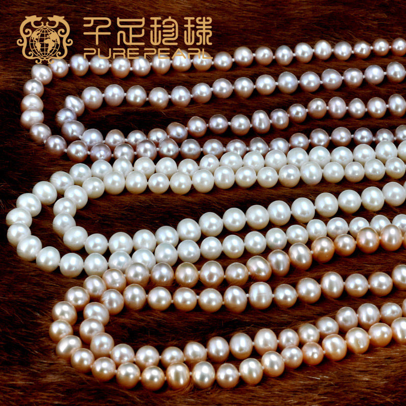千足珠宝圆润强光基本光洁7-7.5mm淡水珍珠毛衣链长项链