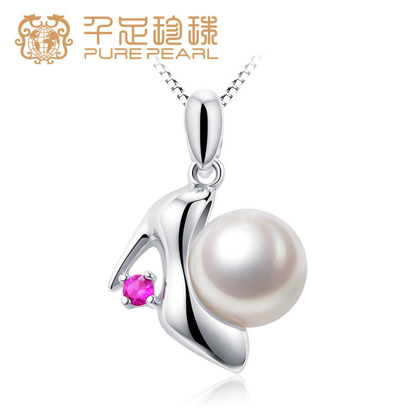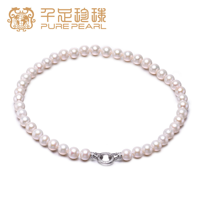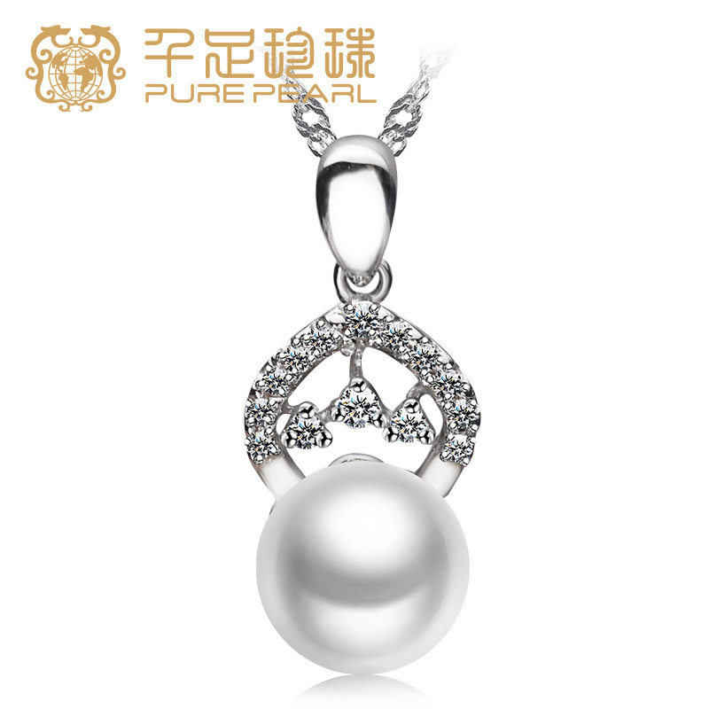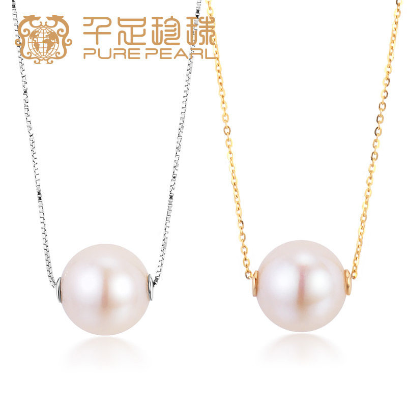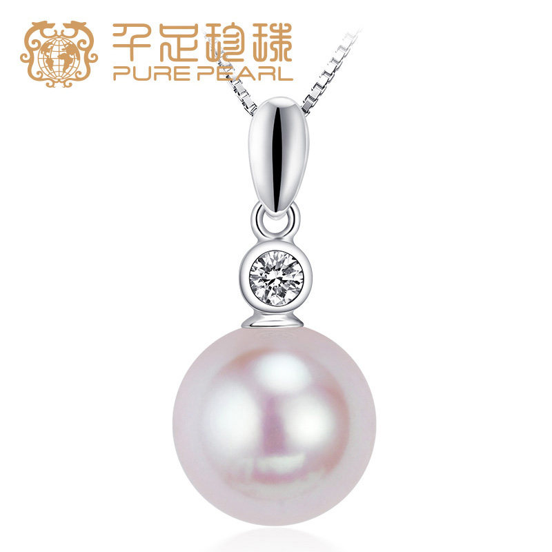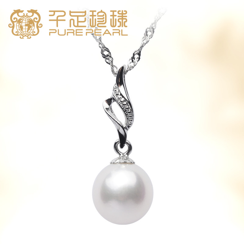 千足珠宝爱丽正圆强光光洁9-9.5mm淡水珍珠银吊坠项链