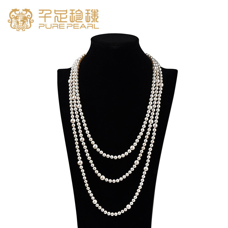 千足珠宝伊恋圆润强亮光洁淡水珍珠长款花式项链毛衣链