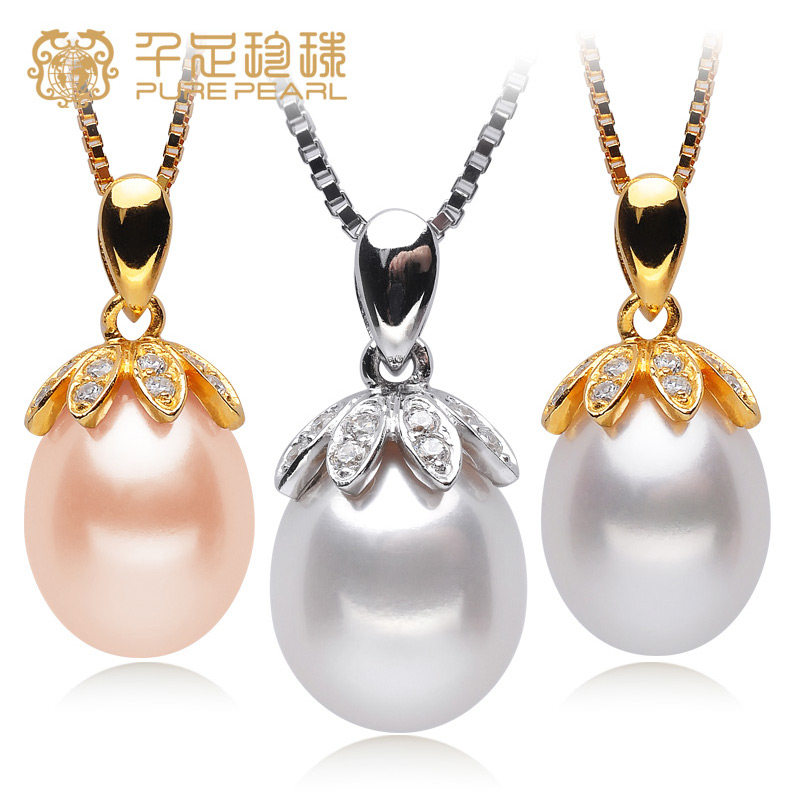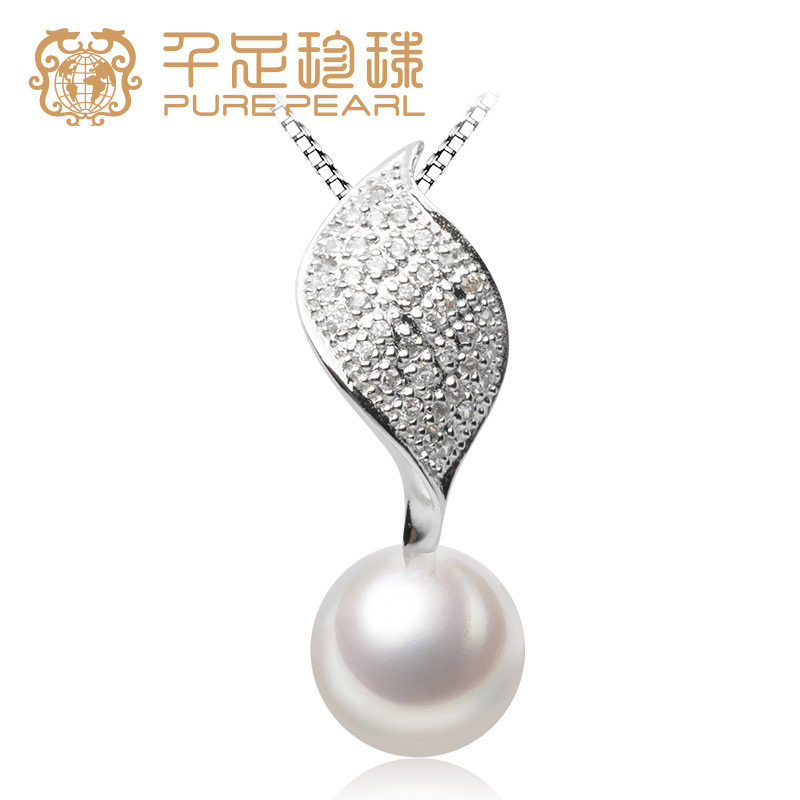千足珠宝甸梦近圆强光9-9.5mm淡水珍珠银吊坠项链新品
