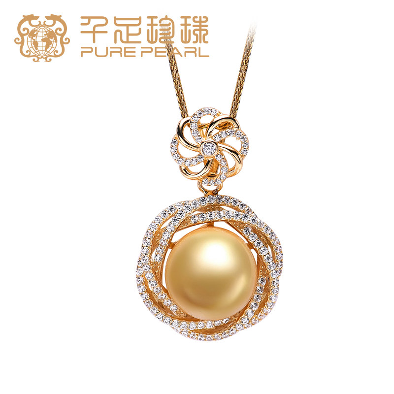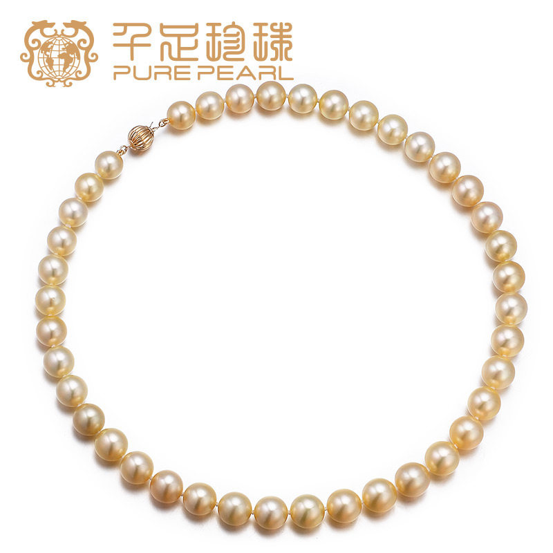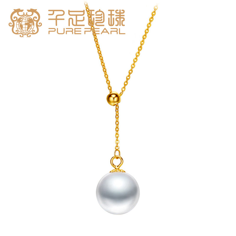 千足珍珠/惜彤/10-11mm正圆18K金海水珠吊坠金色强光微瑕项链