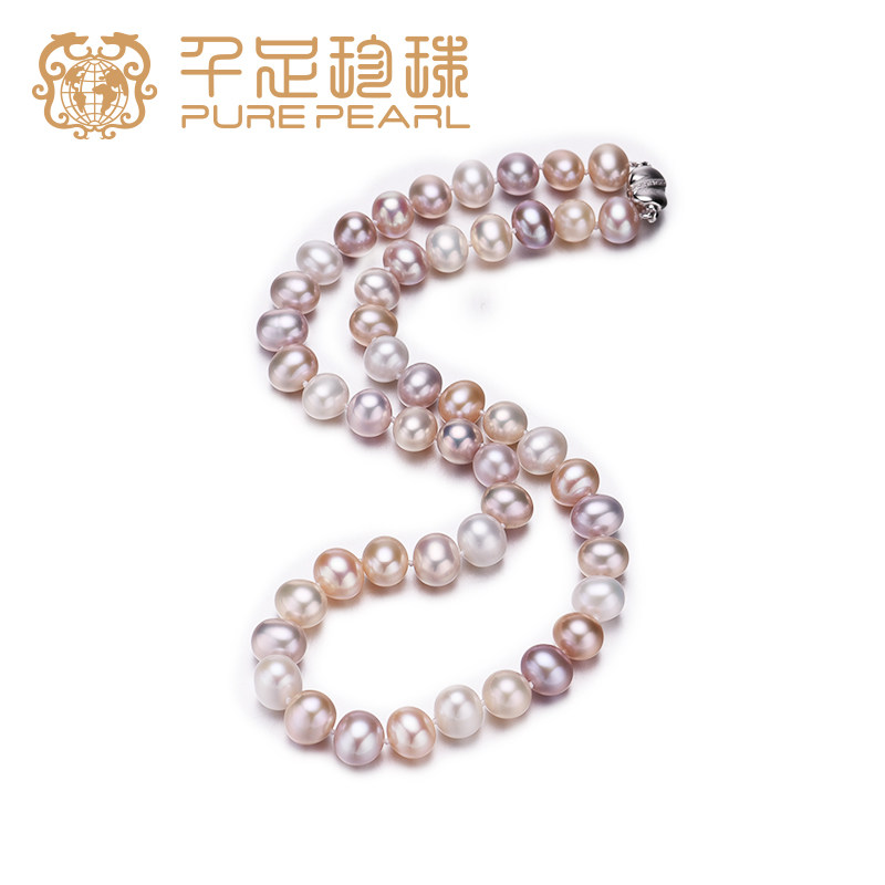 千足珍珠8-9mmS925银淡水珠项链微瑕