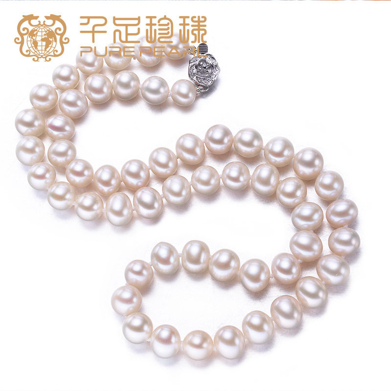 千足珠宝 迷迭 9-10mm圆强亮基本光洁淡水珍珠项链送妈妈赠长辈