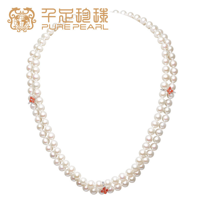 千足珠宝 绚丽 圆润强亮近光洁7.5-8mm珍珠项链珠宝送礼