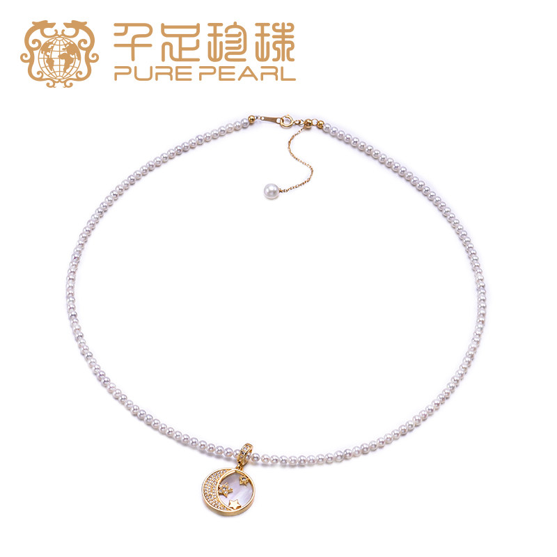 千足珍珠/诗云/3-4mm淡水珠吊坠白色微瑕18K满天星项链