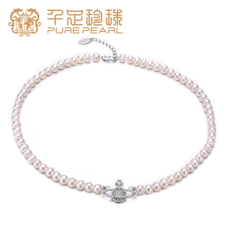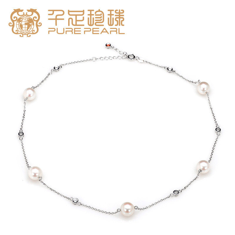 千足珍珠淡水AK项链S925银女7-8mm女百搭锁骨链