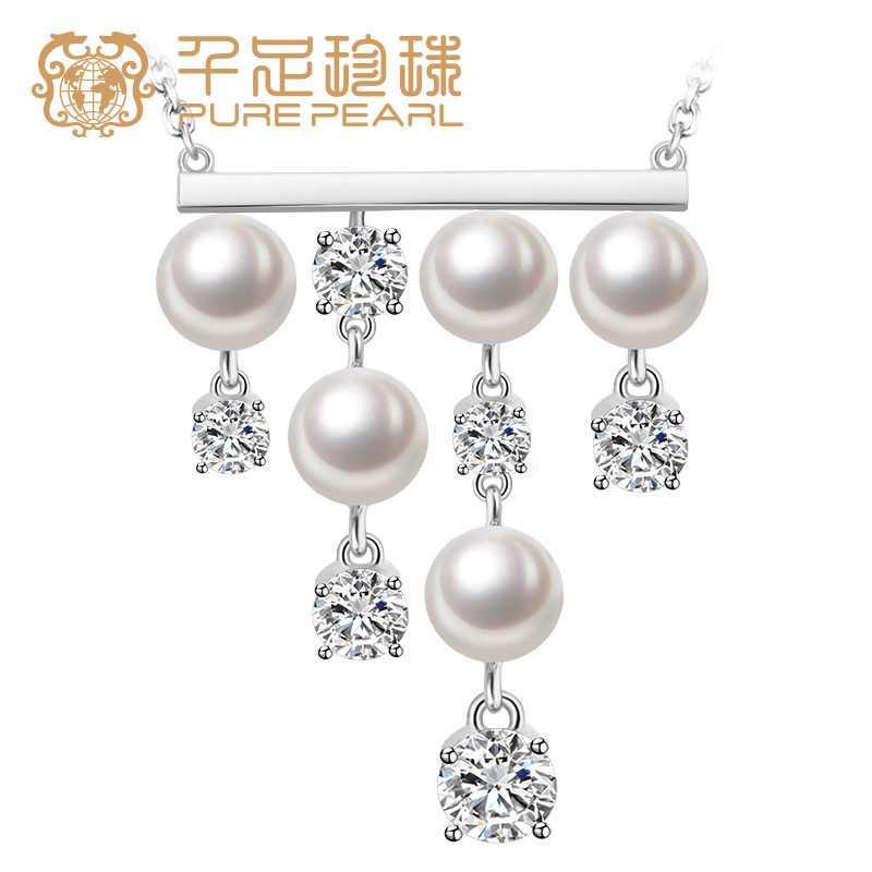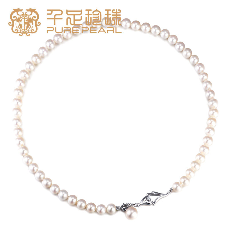 千足珠宝烁繁光洁圆润强光7-7.5mm淡水珍珠银吊坠项链