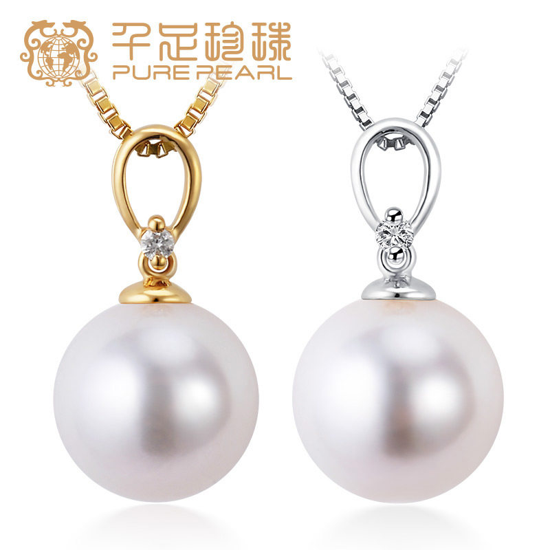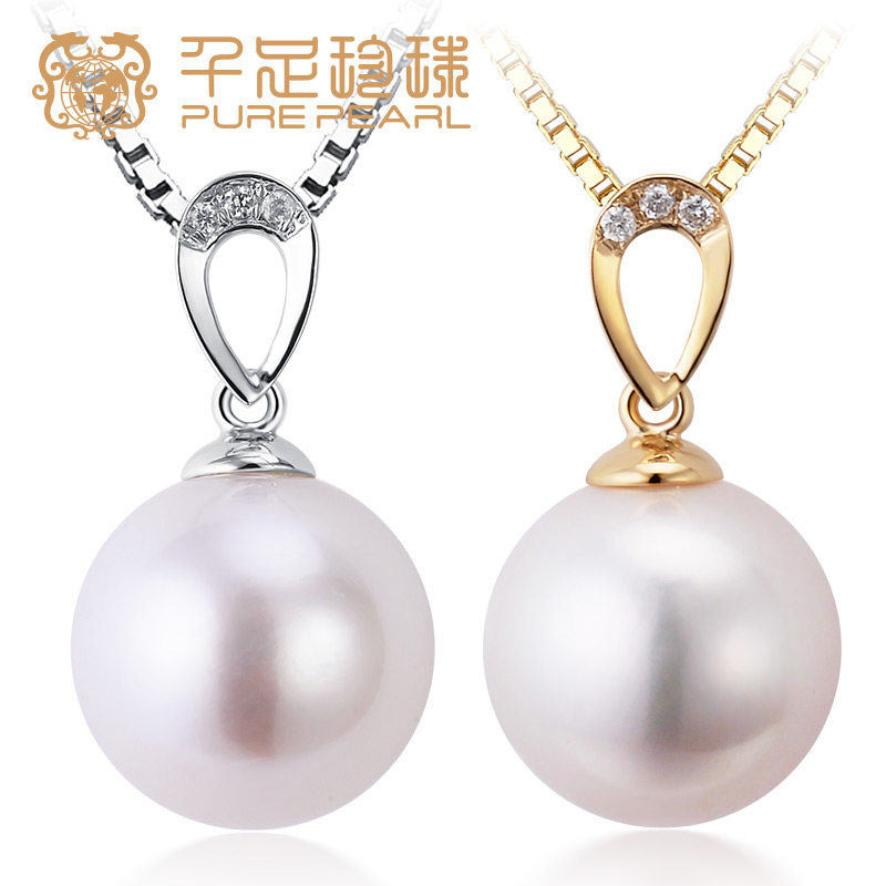 千足圆强光细小微瑕10-10.5mm淡水珍珠吊坠18K项链