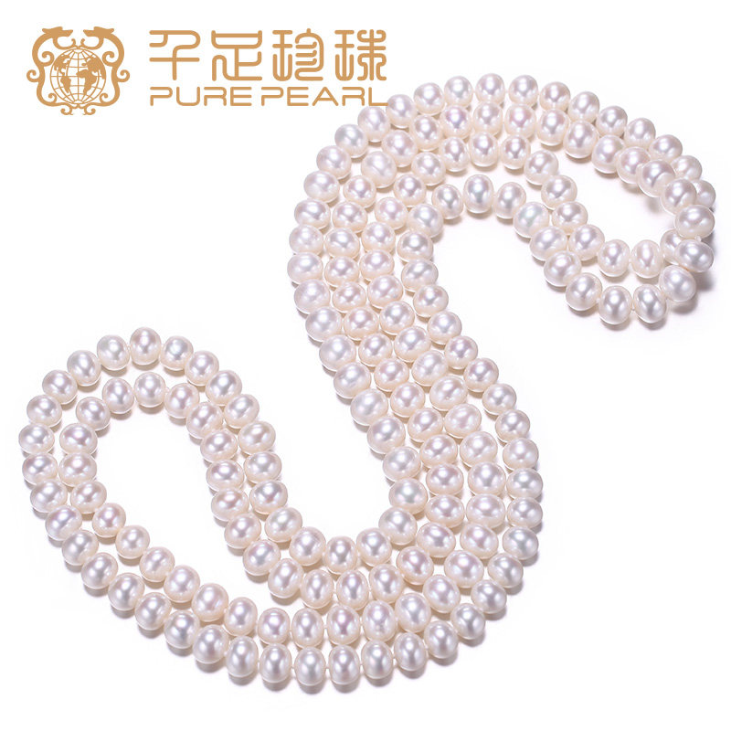 千足珍珠7-10.5mm光洁强光淡水珍珠毛衣链长项链240cm