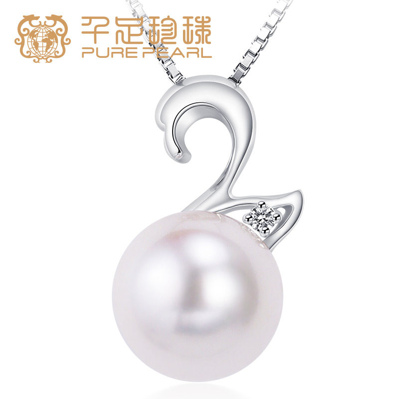 千足珍珠墨翼9-9.5mm近圆细小微瑕强光珍珠吊坠项链小天鹅系列