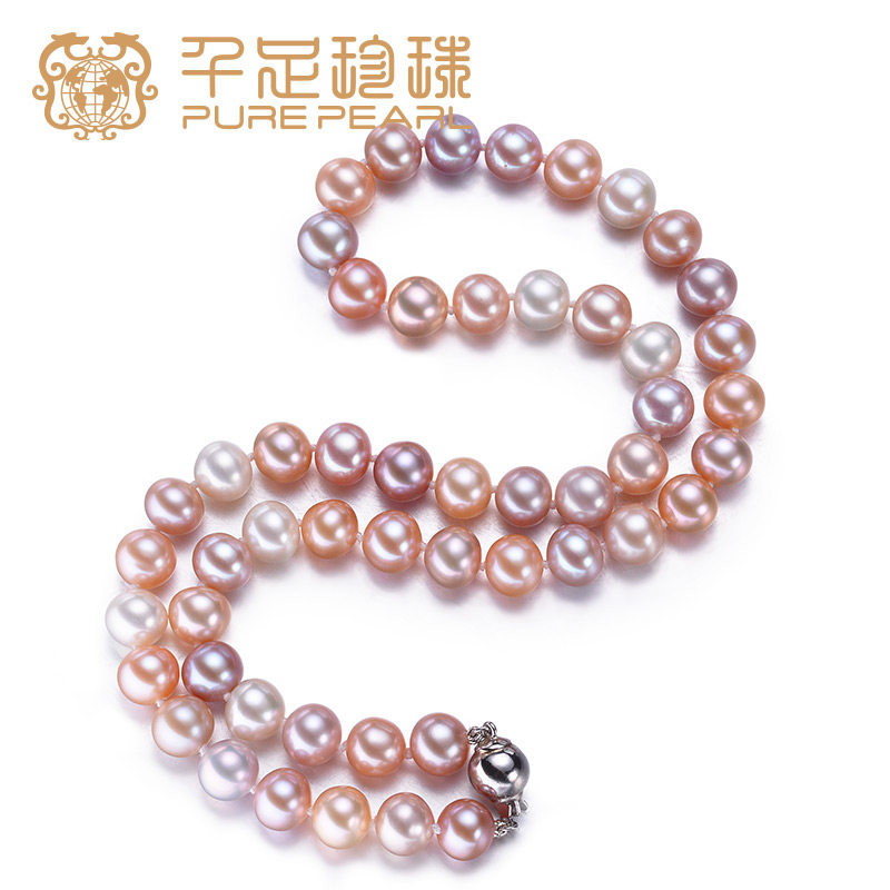 千足珠宝 梦昼近圆强光7-7.5-8mm高品质淡水珍珠项链首饰多色可选