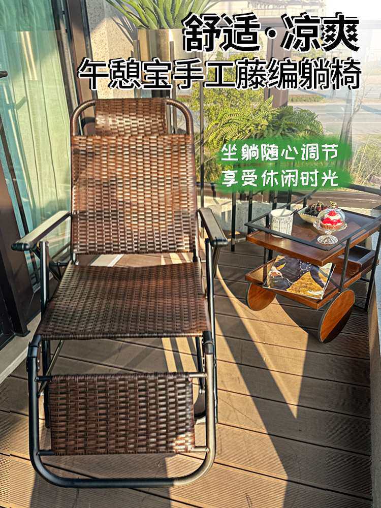 藤编折叠躺椅懒人夏季午休神器午睡床藤椅家用阳台休闲椅子办公室
