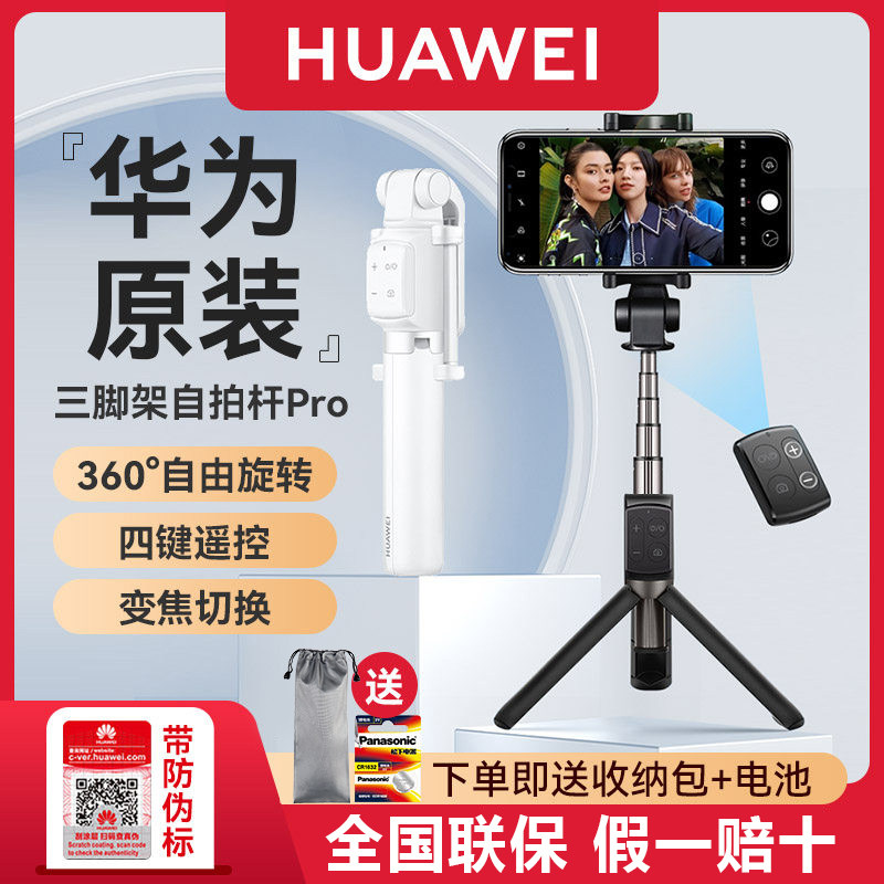 华为原装自拍杆三脚架一体式360旋转伸缩多功能防抖蓝牙遥控通用手机便携直播自拍神器官方2023新款三角支架