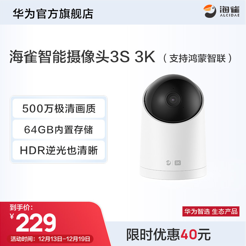 华为智选 海雀智能摄像头3S3K500万超高清手机远程智能监控家用