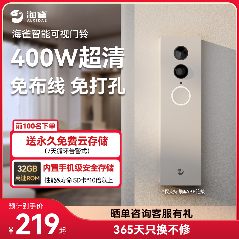 华为云海雀智能可视门铃360监控家用可视电子猫眼门口无线摄像头