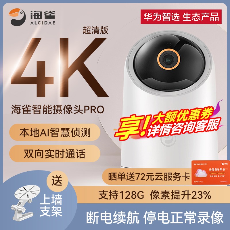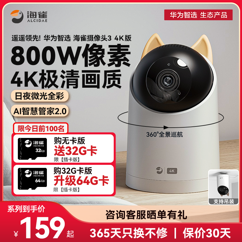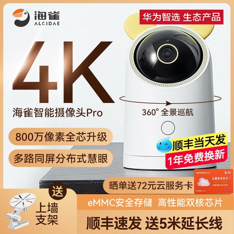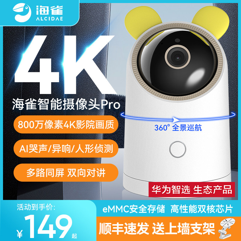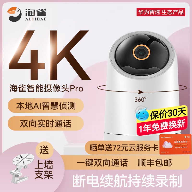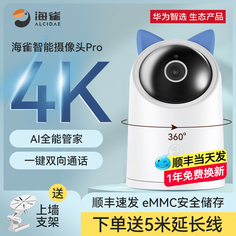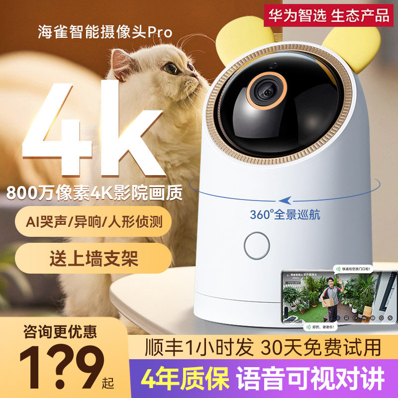 支持HUAWEI HILINK华为智选华为智选海雀Pro4K监控智能摄像头家用双向语音家庭手机室内夜视高清海雀ai全景