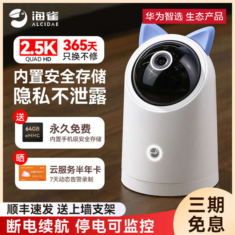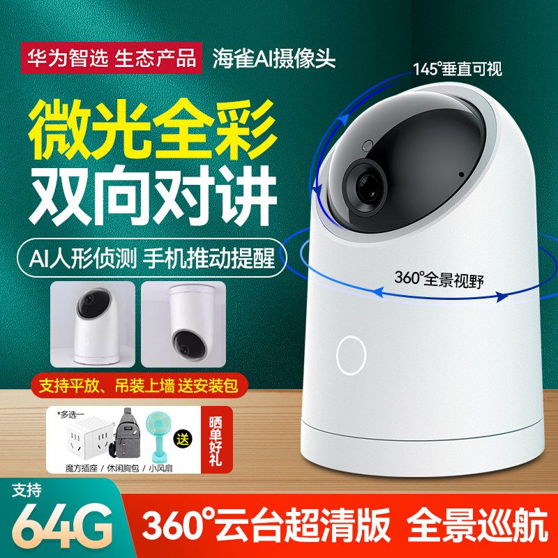 [顺丰速发]华为智选海雀监控摄像头智能家庭家用云台360度夜视无线监视器wifi全景高清手机远程室内摄像宠物