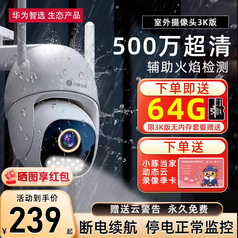 华为智选小豚监控无线摄像头3K室外家用远程手机对话高清夜视摄影