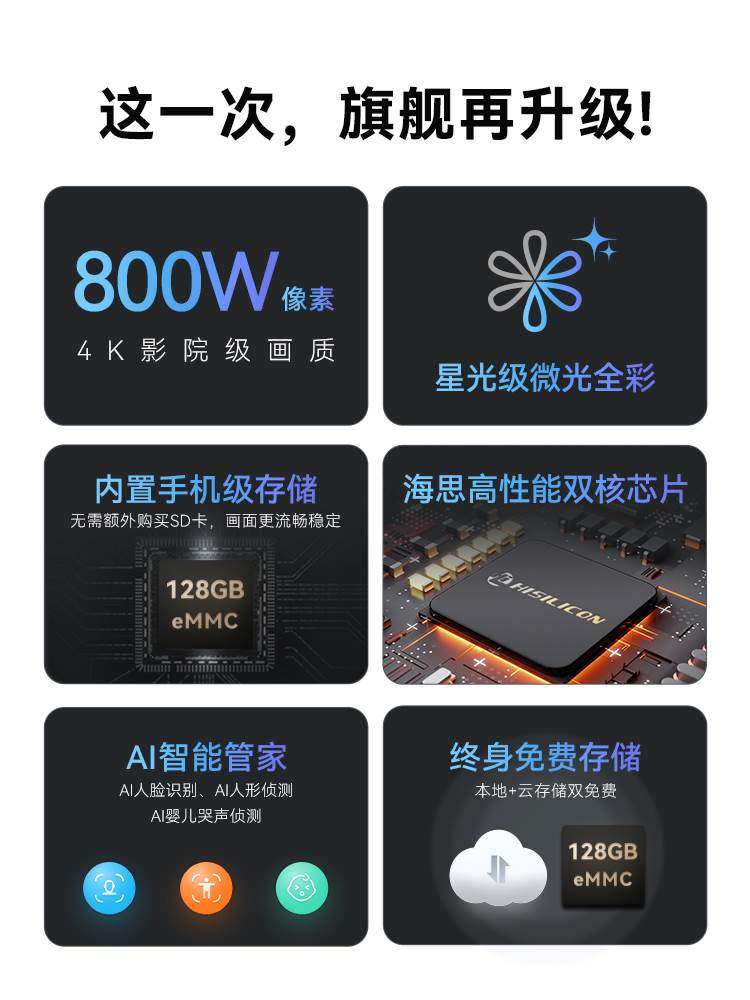华为云真4K摄像头家用免费存储360全景婴儿监控摄像远程手机适用