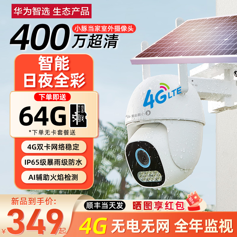 【顺丰速发】华为智选小豚摄像头4G监控器家用360度全景摄影头手机无线双向对讲远程全景高清套装户外全彩