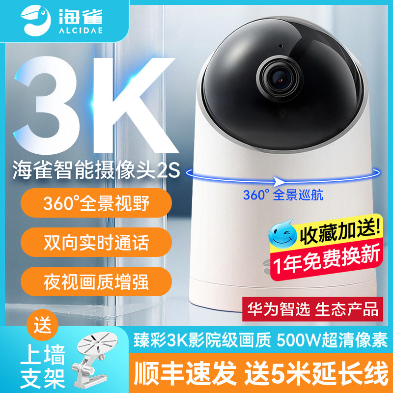 华为智选海雀3K智能摄像头监控器500W高清套装家用远程手机无线宠物家庭室内360全景老人通话对讲五百万像素