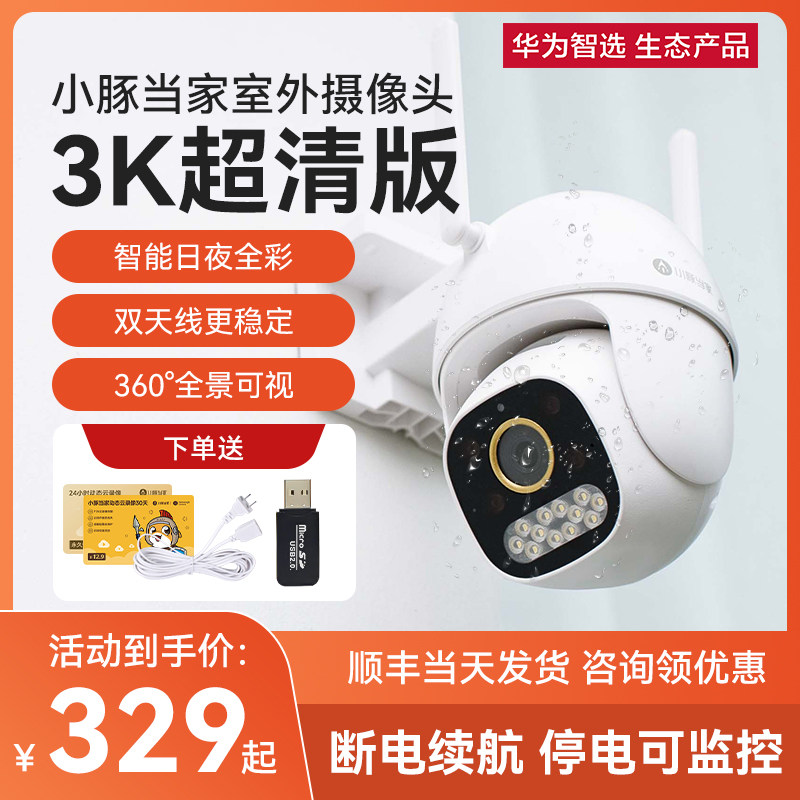 【顺丰速发!】华为智选小豚摄像头3K版家用远程高清摄像头360度无死角监控监视器户外防水无线wifi日夜全彩